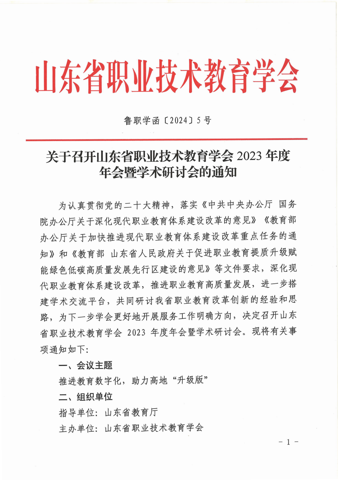 关于召开山东省职业技术教育学会2023年度年会暨学术研讨会的通知